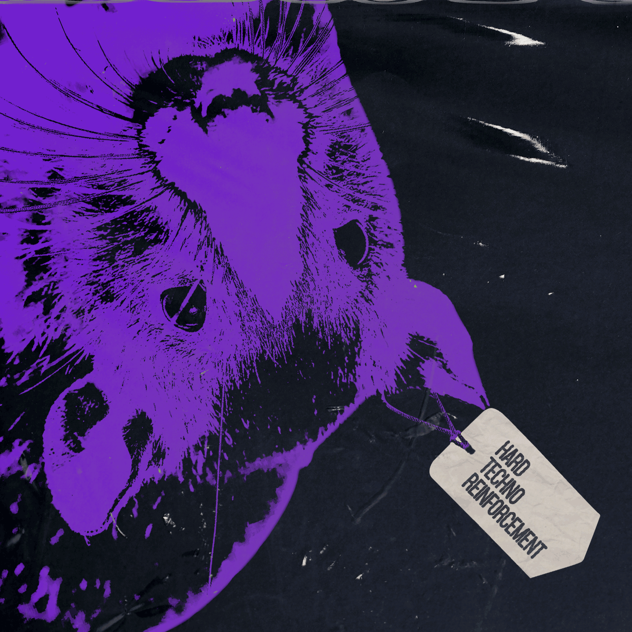 Sample pack with distorted kick drums, percussion samples, and 50+ Serum 2 hard techno presets inspired by artists like 6EJOU, Raxeller, and KRTM.